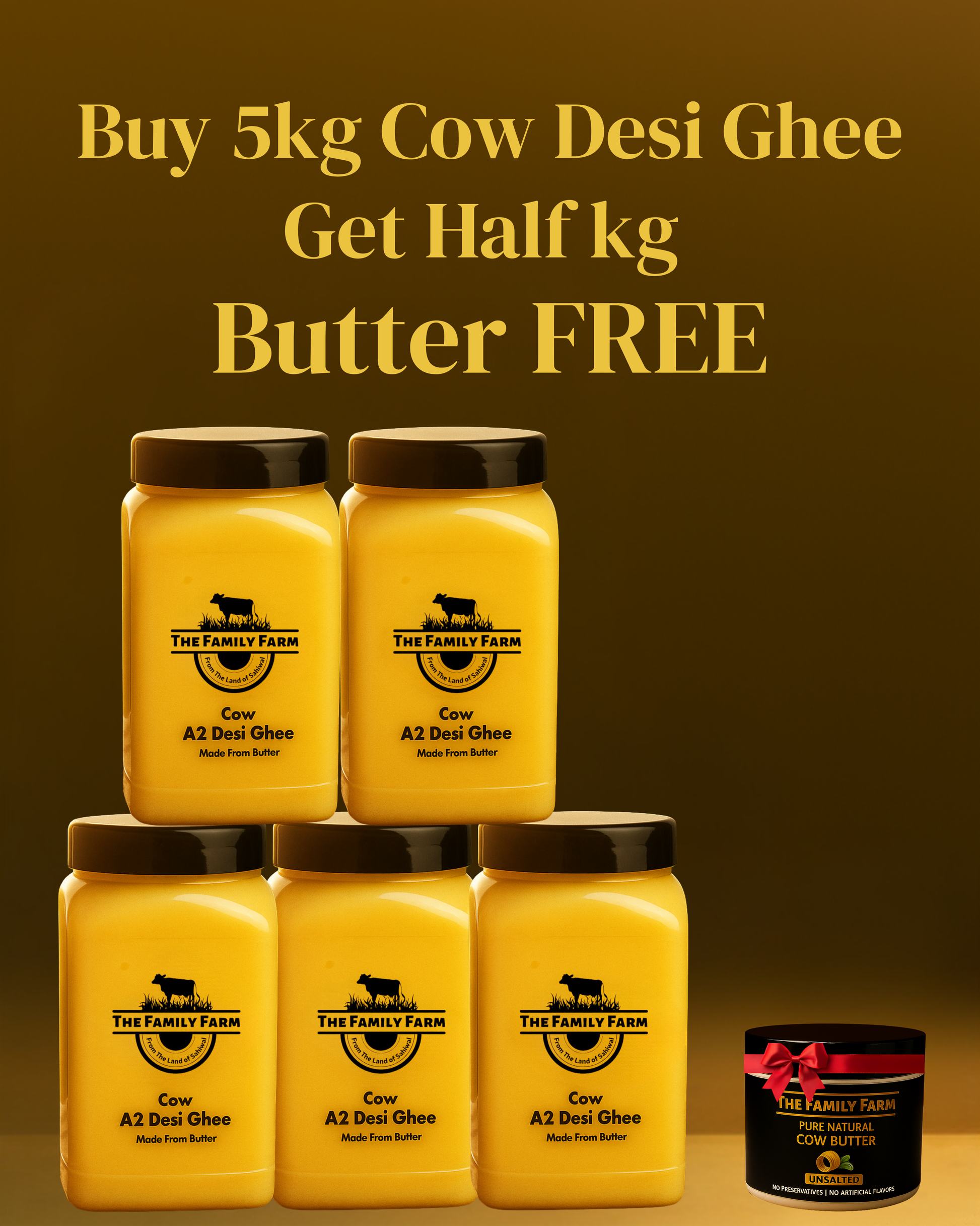 Real A2 Cow Desi Ghee — just like it’s made at home.